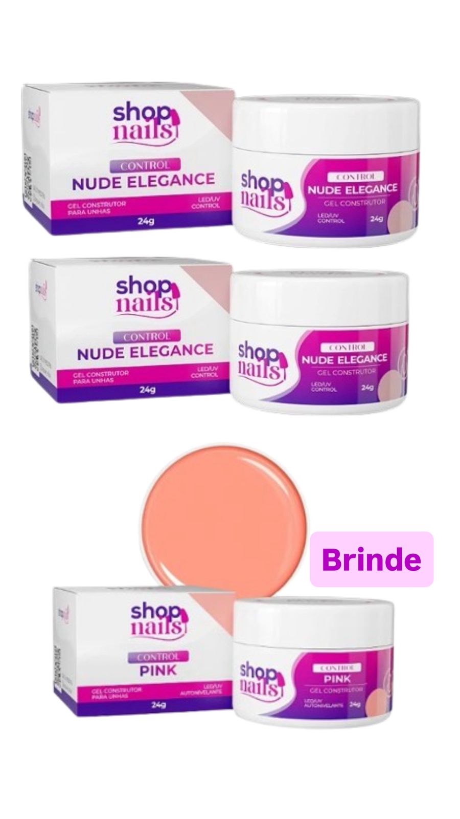 Kit com 2 Geis control Nude Elegance + 1 Gel control pink de brinde.