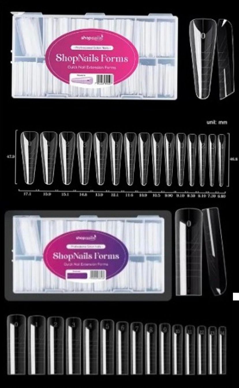 Contém 300 moldes, sendo 150 no formato mandorla e 150 no formato quadrado, fabricados em material ultrafino de 0 milímetro, proporcionando unhas mais finas, flexíveis e maleáveis, com melhor adaptação a todos os tipos de unhas.